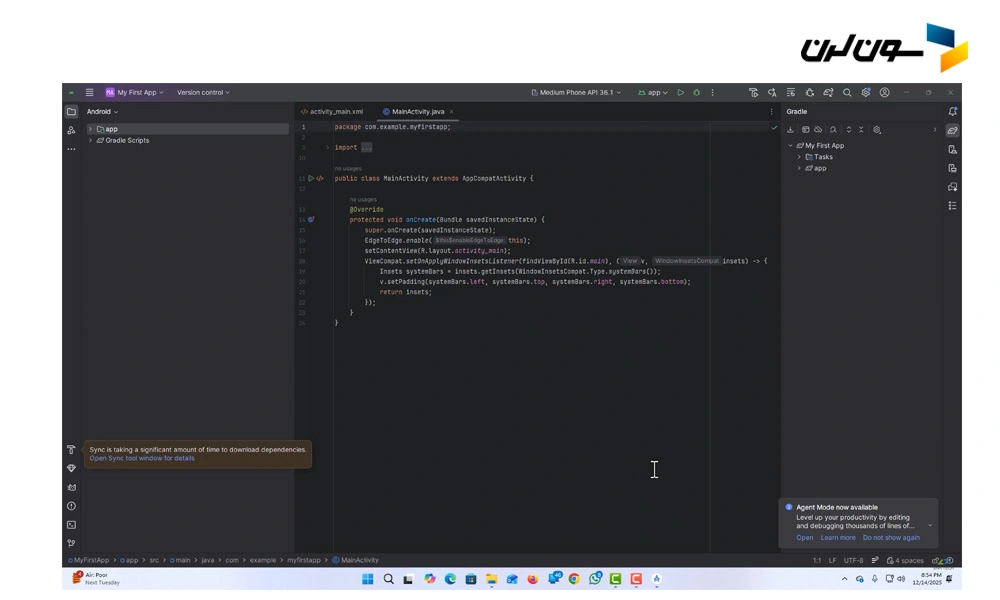 Android Studio برنامه را Build میکند و شبیهساز را اجرا میکند. بار اول ممکن است بالا آمدن Emulator کمی زمان ببرد.
