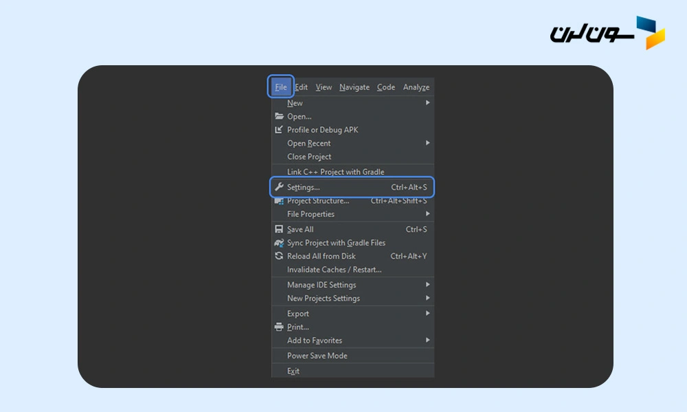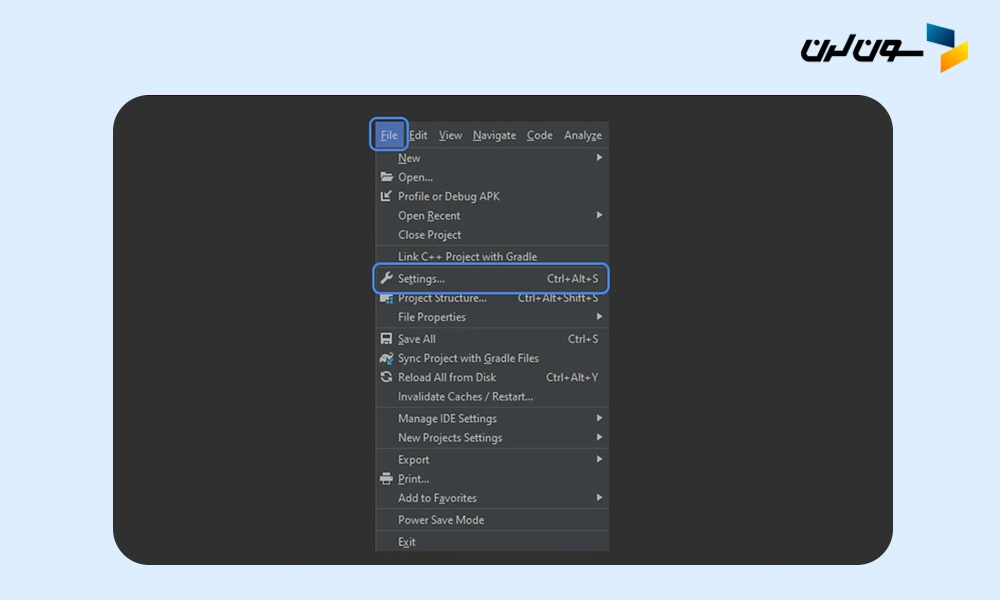 در مرحله اول از منوی File روی گزینه Settings کلیک میکنیم: