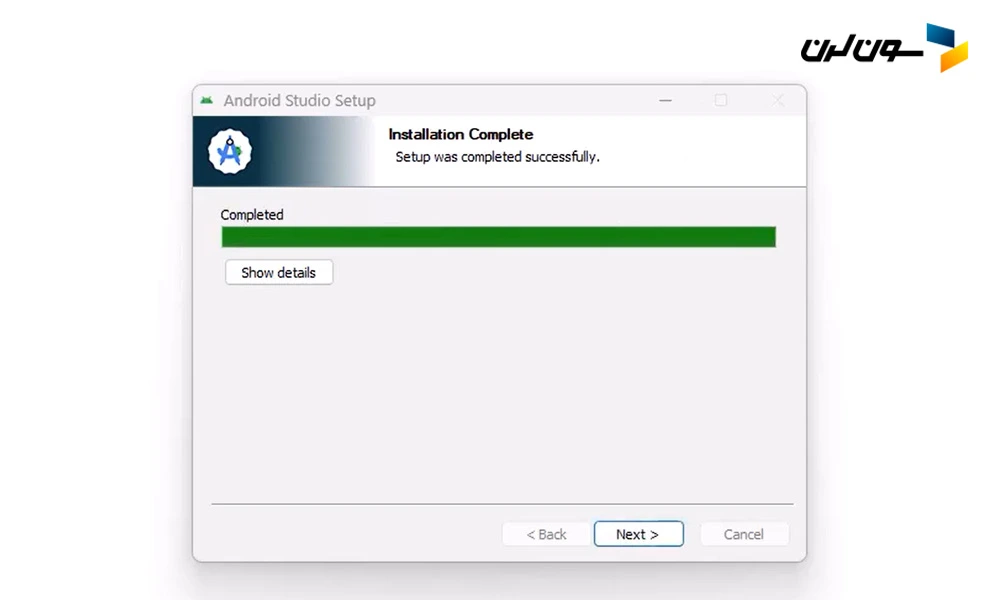 در این قسمت، فرایند استخراج کردن فایلهای اندروید استودیو شروع میشود. بعد از تکمیل عملیات روی Next کلیک کنید.