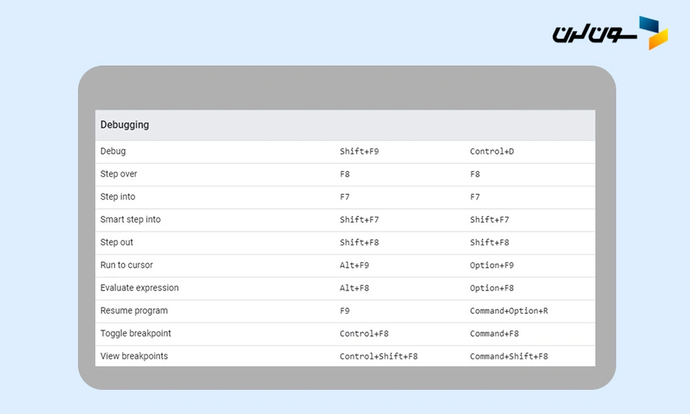 میانبرهای دیباگ: میانبر هایی که جهت دیباگ کردن در پروژه استفاده میشوند.