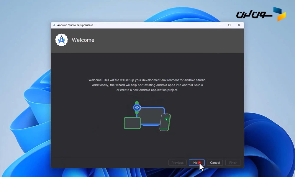 در این قسمت، علامت Android Virtual Device را زده و روی Next کلیک کنید.