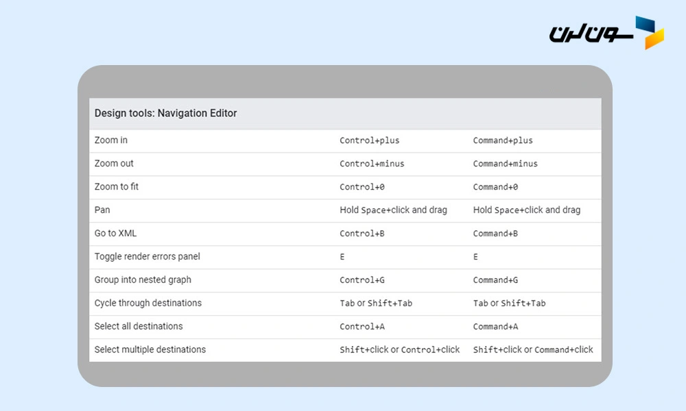 میانبرهای فایلهای Navigation: امکان استفاده در layout هایی که از نوع Navigation هستند.