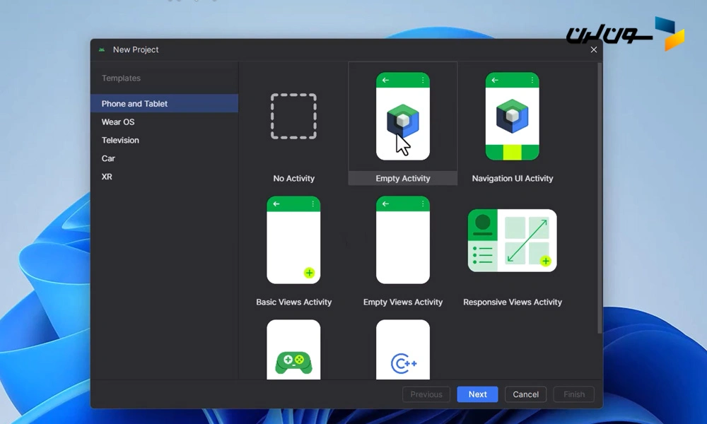 از بین قالبها (Templates)، گزینه Empty Views Activity را انتخاب کنید و Next را بزنید.