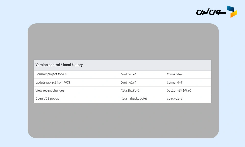 میانبرهای VCS: میانبر هایی که برای مدیریت و انجام عملیاتهای Version Control مورد استفاده قرار میگیرند.
