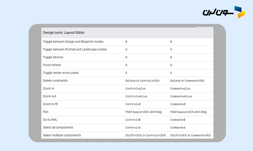 میانبرهای layout s دیزاین: این میانبرها امکان انجام عملیاتهای مختلف در فایلهای xml را فراهم میکند.