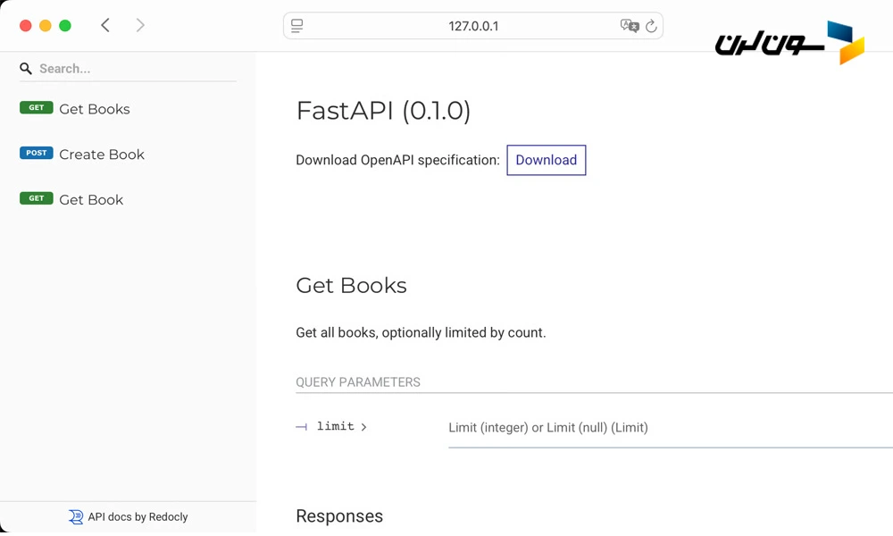 اولین endpoint، لیست کتابها را برمیگرداند و یک پارامتر اختیاری به نام limit دارد:
