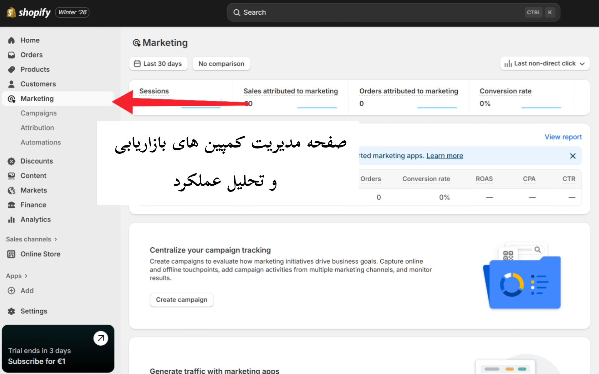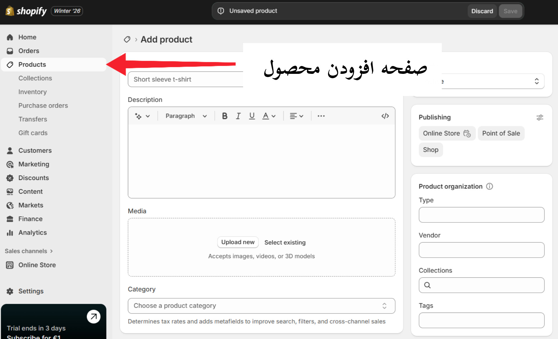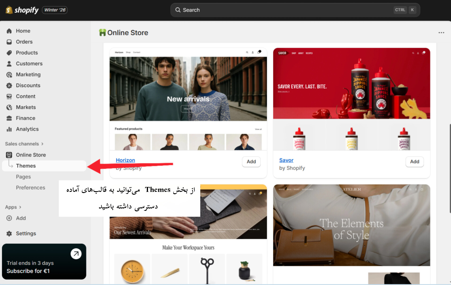 می تونی بدون ریسک و به مدت سه روز Shopify رو تست کنی. برای فعال کردن دوره آزمایشی نیاز به کارت اعتباری نداری.